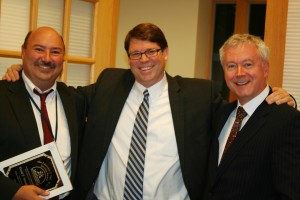 Matheny is pleased to announce this year’s recipients of the Lawrence T. Taft Award, given to medical staff who have demonstrated a long-term commitment to serving its patient population. They are David F. Howarth, M.D., M.P.H, and Alfred F. Tallia, M.D., M.P.H. Dr. Howard, left, and Dr. Tallia, right, were recently presented with the award by Gary E. Eddey, M.D., M.P.H., chief medical officer at Matheny. Both Drs. Howarth and Tallia are also part of the family medicine staff at Robert Wood Johnson University Hospital in New Brunswick and members of the faculty at RWJU Medical School.