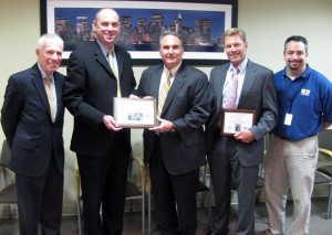 Above: Matheny presents “Certificates of Appreciation” to WCBS-TV. From left, Steve Proctor, Matheny president; Kevin Ralph, Matheny chief development officer; Peter Dunn, president, CBS Television Stations; Don Dahler, WCBS-TV news anchor; and Eric Berlin, WCBS-TV weekend producer.