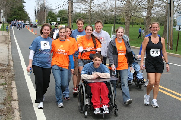 Above, participants in the 2009 Lu Huggins Wheelchair Walk on Main Street in Peapack.