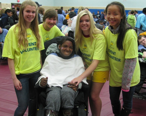 And thanks to Peapack-Gladstone for inviting Matheny to use the gymnasium in the municipal building as a gathering place for all the wheelchair participants, who, otherwise, would have had to be outside. In fact, there was a party atmosphere in the gym as volunteers, Matheny staff members and families joined the Matheny students and patients to wait for the start of the Lu Huggins Wheelchair Walk.