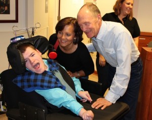 One of the recent beneficiaries of this gift was Matthew Detgen, a non-verbal student who was able to work as a greeter at the Matheny School’s Back-to-School Night. Stationed in the main lobby, Detgen activated switches that said: “Welcome to Back-to-School Night” and “I’m Glad You Could Make It.”