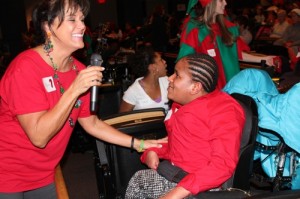 The energetic Holiday Express singer Pam McCoy was everywhere, offering her microphone to Matheny students, patients and their family members. Bedminster’s Byron Smith sang his original composition, “Santa’s Comin’.” And Geri Brewer, mother of adult patient Rasheedah Mahali, became the second Matheny parent to be part of the band, performing a solo on “This Little Light of Mine,” prompting McLoone to say, “The light keeps shining on all these wonderful people, the dedicated caregivers at Matheny.” The other Holiday Express parent is trumpeter Jim Yedloutschnig, father of adult patient, Alicia Yedloutschnig.