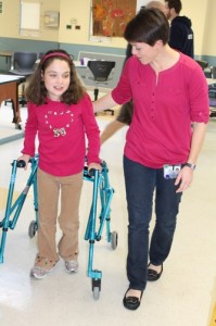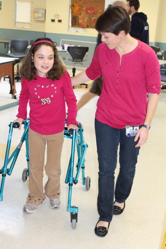 While virtually all of Matheny’s students and patients spend most of their lives in wheelchairs, they often spend time in a walker during physical therapy to increase their endurance and strengthen their muscles. Occasionally, a surprising breakthrough occurs during these physical therapy sessions.