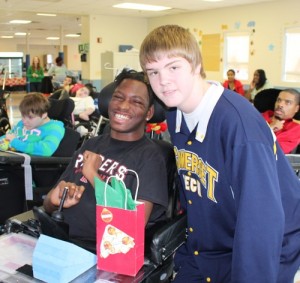 The team arrived Christmas morning, bringing several hefty bags of toys and games. According to Janice Kriegman, Matheny development officer, who was at Matheny that day, “the boys seemed to instinctively know how to interact with each resident. I was touched by how natural and caring they were. They had just the right touch.”