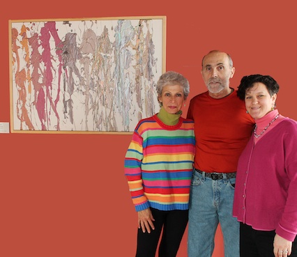 Betty and Joe Christie of Keyport, NJ, parents of late artist Jason Christie, next to his painting “Wolverine.” At right is their niece Leslie Bergman of New York City.