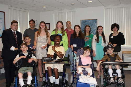 Standing, from left, Matheny principal Sean Murphy, Matheny student Ryan O’Connor, teaching assistant Carlos Nieves, BHS student Isabella St. Onge, BHS student Tatiana Prendella, teaching assistant Chris Filchak, BHS student Pelin Ozel, Matheny teacher Karen Dakak, BHS student Fiona Dunn and BHS teacher LuAnn Faletta. Matheny students in front row, from left, Scott Gordon, Yasin Reddick, Kaila Jones and Patrick Conmy.