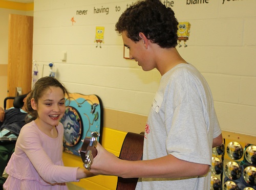 Max Berg, a resident of Gladstone, NJ, and a student at Bernards High School in Bernardsville, NJ, brought his guitar to Matheny on a recent Friday afternoon and entertained residents of the children’s wing with a variety of tunes including the Foo Fighters hit, “Big Me” and “Time of My Life”, a song from the soundtrack of the movie Dirty Dancing that was recorded later by the Black-Eyed Peas.