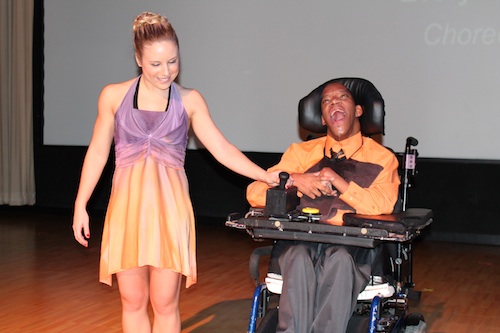 Dancer/choreographer Dion Alston, performing “Every Teardrop is a Waterfall” with dance facilitator Elizabeth Zelesny.