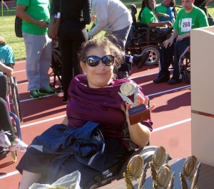 This year, four Matheny athletes competed in wheelchair races and dashes, the slalom obstacle course and the shotput. They also enjoyed carnival games and a magic show. Adult patient Shaleena Tommassini received a trophy designating her as Top Outstanding Adult Female of the day.