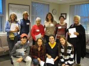 Bottom row, from left: Pito Walton of Peapack; Frances and Charlotte Steele of Bedminster; Bella Walton, Peapack. Top row, from left: Jane Steele; Betsy Walton; Joan Millard of Toms River, NJ; Ali Millard and Lily Steele of Bedminster; and Mrs. Orr, visiting from Florida. (Also caroling, but not pictured, were Susan, Emma, Ellie and Ryan Palmer of Oldwick).