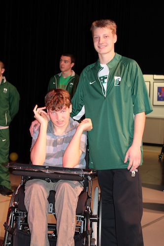 The students and patients at Matheny look forward to the annual visit by the varsity basketball team of the Delbarton School, an independent Roman Catholic learning center in Morristown for young men in grades 7–12. But this year brought a special twist. Delbarton basketball player Josh Szott was able to compete along with his brother Shane, a student at Matheny. Josh and Shane are the sons of David and Andrea Szott of Morristown, NJ.