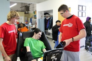 Members of Team 75, the RoboRaiders, Hillsborough, NJ, High School’s FIRST robotics competition team, visited the Matheny Adult Learning Center, also in Hillsborough, and brought with them special switch-operated light boxes that they donated to the Matheny adults. They are also creating a switch-operated camera for use by Matheny adults.