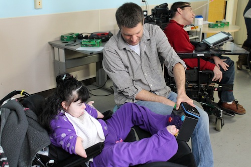According to Todd Deremer, an adaptive physical education instructor at the Hillsborough Adult Learning Center, the light boxes help Matheny’s adults in several ways. “They use them to improve coordination, by accessing one of the four buttons with their hands or feet,” he says. “The light boxes also help with color recognition, perception of cause and effect, tactile stimulation and visual stimulation.”