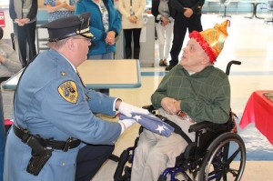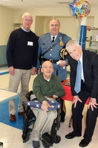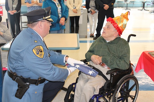 Peapack-Gladstone Police Chief Greg Skinner presented Chuck with a special United States flag, and Peapack-Gladstone Mayor William Horton offered congratulations and said he was “blessed to be a next-door neighbor of Matheny.”