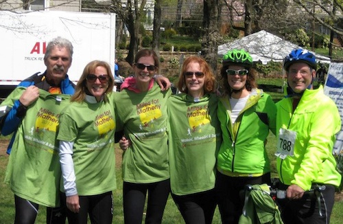 Fat Bottom Girls cycling group from last year’s Miles for Matheny. From left, David and Fran Graham, Bethlehem Twp., NJ; Nora Godown, Chester, NJ; Jill Reuter, Nazareth, PA; Meg and Steve Slutter, Clinton Twp., NJ. Jill, Nora and Meg are sisters.