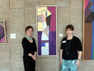 Noreen Gomez, left, and Eileen Murray in front of “The Good Arts are Special” by Ellen Kane.