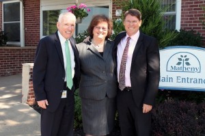 Cathy Church with Matheny president Steve Proctor, left, and Gary E. Eddey, MD, vice president and chief medical officer.