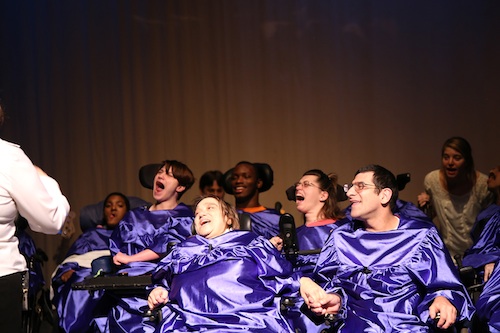The vocal choir and midi bell counterparts (for nonverbal participants) are part of Matheny’s unique music therapy program. The music therapy staff consists of five full-time, board-certified music therapists. The choirs perform throughout the year at a variety of venues. Their appearances this year included both Holiday Express benefit concerts, December 11 at the New Jersey Performing Arts Center in Newark, NJ, and tonight (December 18) at the Count Basie Theatre in Red Bank, NJ; the Peapack–Gladstone tree lighting ceremony; and the annual Festival of Trees at the Environmental Education Center in Basking Ridge, NJ.