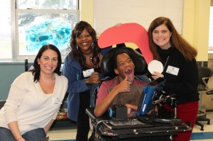 From left, volunteers Lauren Iannaccio, Shaun Queen and Erin Hageman with Matheny adult resident Dion Alston.