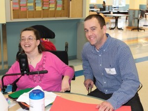 From left, volunteers Lauren Iannaccio, Shaun Queen and Erin Hageman with Matheny adult resident Dion Alston.
