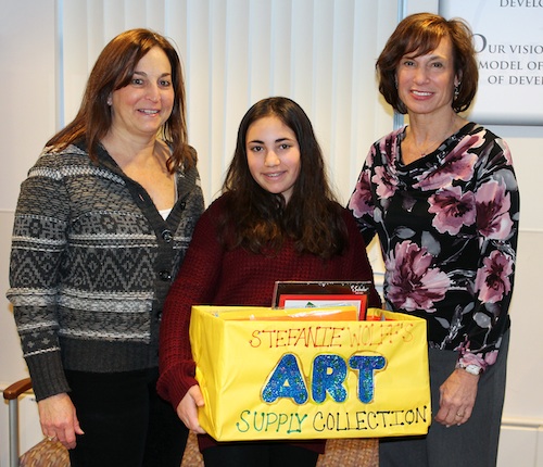 Recently, as her bat mitzvah project at Temple Beth Ahm in Aberdeen, NJ, Stefanie spoke about her volunteering experience and collected art supplies, which she then donated to Matheny. Stefanie had also attended Jenna’s bat mitzvah, which was held last May in Matheny’s Robert Schonhorn Arts Center.