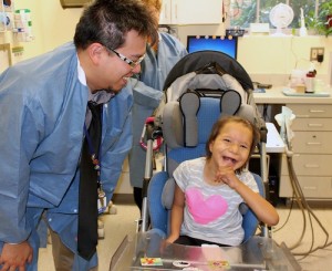 Mengchi Steven Yang, DDS, with a young dental patient.